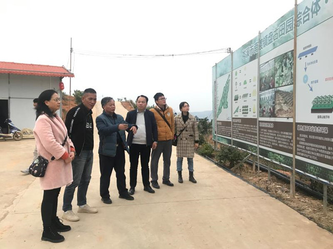 调研组实地走访考察岑溪市南渡镇盘古田园综合体基地建设情况,边听取岑溪市博园农业发展有限公司负责人的介绍边查看牛蛙养殖场沼肥综合利用设施建设项目和牛蛙养殖场养殖粪污集中处理项目建设情况。据介绍:盘古田园综合体占地3300亩,以绿色、循环、生态环保、可持续发展理念,规划利用山地种植柚子3000亩,配套建设蚯蚓养殖场和蛙类养殖场,实现山地绿化覆盖,防止水土流失,建设绿色生态家园。