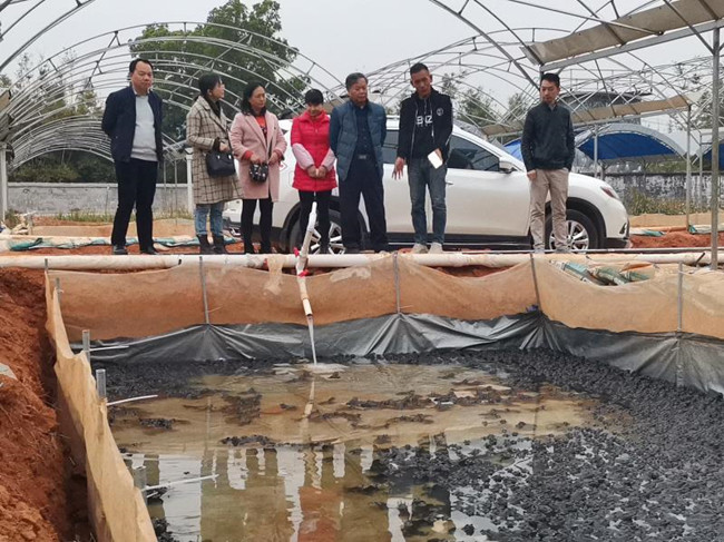 调研组提出要充分利用牛蛙养殖场沼肥综合利用设施建设项目和牛蛙养殖场养殖粪污集中处理项目带动作用,健全完善园区内粪污集中处理设施和沼肥综合利用设施建设,将养殖场养殖过程中产生的粪污通过净化处理后用于灌溉柚子林,既能解决养殖粪污排放难题又能满足柚子生长的肥水需求,实现绿色循环可持续发展。