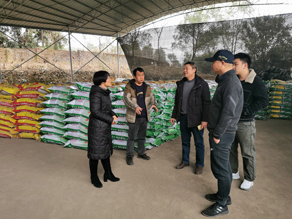 调研组在广西施佳得生物科技有限责任公司生产基地了解有机肥生产销售情况