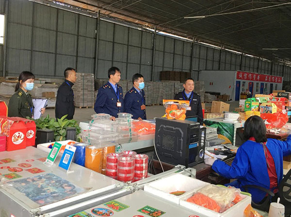 连日来,由武鸣区农业农村局、市场监管局、综合行政执法局等部门组成联合执法检查组,对辖区内100多家水果分选加工企业以及水果分选加工相关产业链纸塑包装、农资经销进行全面排查。3月19日下午,南宁市农业农村局到武鸣区开展执法检查,目前,执法组随机抽检的沃柑加工样品全部合格。同时,为加强农产品安全检测,武鸣区于2021年3月18日出台相关政策,对采购商在武鸣区采购的沃柑进行免费检测,并对城区内进行工商登记注册并且依法依规建设的水果分选加工企业,免费安装检测设备及免费培训检测人员。