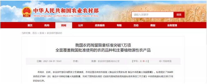 由国家卫生健康委、农业农村部和市场监管总局联合发布的《食品安全国家标准 食品中农药最大残留限量》(GB2763-2021)标准将于9月3日起正式实施......