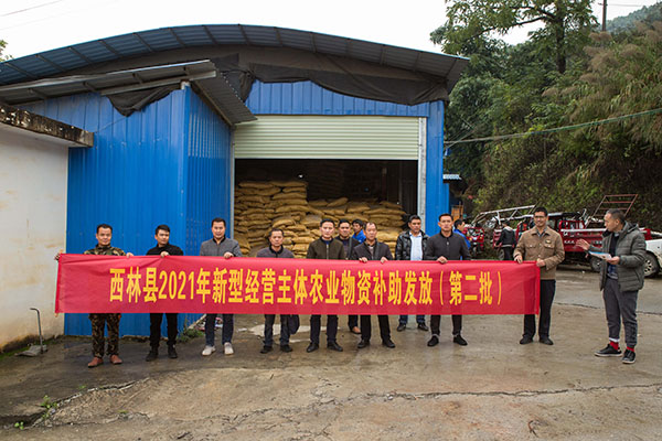 11月23日,西林县农业农村局在城西新区集中统一为2021年第二批27家新型经营主体免费发放化肥物资95.04吨,价值14万元。