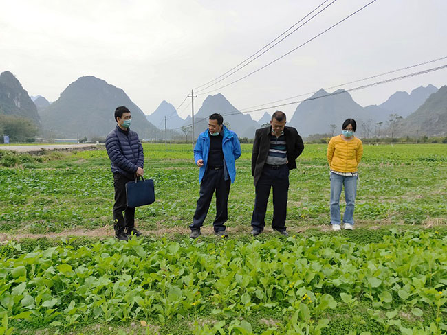 1月4日,南宁市土壤肥料工作站黄树生站长带领技术人员到上林县开展市本级冬种绿肥示范片项目建设调研工作,了解南宁市绿肥生产情况。上林县农业农村局农业股黄志健股长、县农技站罗德英副站长共同参与调研。