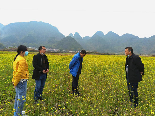 调研组在上林县西燕镇了解本地油菜生产情况