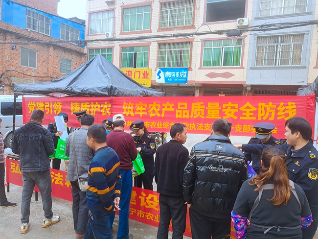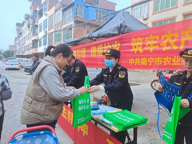 广西农牧农资网讯 日前,南宁市农业综合行政执法支队第一党支部在武鸣区甘圩镇中心市场开展“立足岗位做贡献”农产品质量安全法治宣传活动。