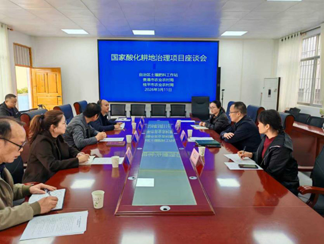 座谈会上,桂平市农业农村局详细汇报2025年酸化耕地治理试点项目实施进展、技术措施与工作成效。