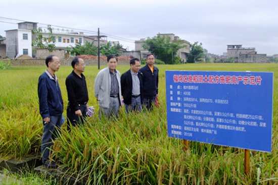 近年以来,福绵区测土配方施肥项目稳步推进,在推广测土配方施肥技术和加强农企合作方面成效显著,受到群众的广泛欢迎。今年樟木镇调马村800多亩早、晚稻在区农业局的精心部署和市土肥站的紧密配合下,全部推广测土配方施肥技术,开展高产创建示范活动,取得了良好的成效,不但提高了肥效,又降低了生产成本,并促使水稻生产大幅提高。李品佳一行对福绵区利用测土配方施肥技术进行高产创建活动给予了充分的肯定和高度赞扬。