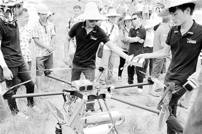 7月25日,柳州市和鹿寨县农机部门在鹿寨镇独羊村举办无人机喷洒农药培训,现场吸引了种植大户们的关注。果农在高温闷热的果园里人工喷洒农药,很容易发生农药中毒,急需喷洒农药的新型自动工具。