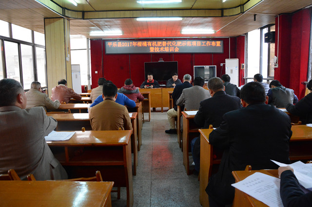 为做好平乐县柑橘有机替代化肥示范工作,确保多项技术模式落地,1月2日,平乐县农业局在五楼会议室召开2017年柑橘有机肥替代化肥示范项目工作布置暨技术培训会,会议由农业局副局长王绍斌主持,全体干部职工参加。