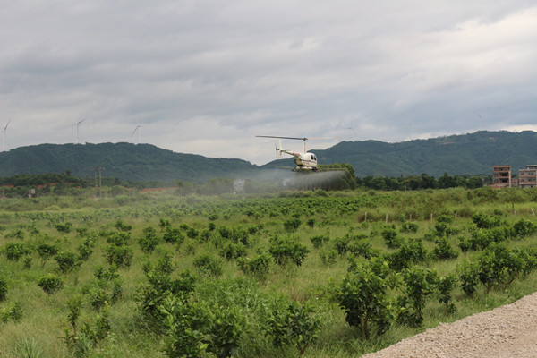 为切实做好柑橘黄龙病防控工作,8月初,贺州市与钟山县联合在钟山县公安镇、同古镇贡柑种植基地利用植保直升机开展了柑橘木虱统一防治行动,统防统治面积8000亩,遏制柑橘黄龙病的蔓延,保障全市柑橘产业持续健康发展。