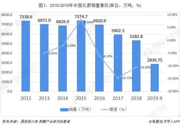 从销量来看,自2016年以来,我国化肥销量呈现连年下降的趋势,至2018年,我国化肥销量下降至5282.8万吨,同比下降10.5%。