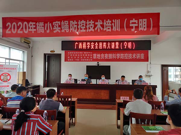 5月25-27日,全国农业技术推广服务中心、广西壮族自治区植保站、崇左市农业农村局组织召开的“科学安全用药大讲堂”、“草地贪夜蛾科学防控技术讲座”、“2020年橘小实蝇防控技术”培训会在崇左市天等县、龙州县和宁明县举行。参加此次培训会的有自治区植保站书记黄文校、自治区植保站药械科科长覃贵亮,市农业农村局副局长、总农艺师赵振豪及各县农业农村局相关领导及种植大户共计220余人。
