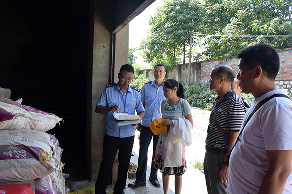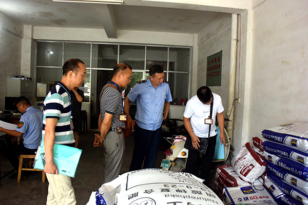 8月12日上午,由桂林市农业综合行政执法支队和市市场监管局联合组成的检查组,到该市新建路肥料经营市场开展“双随机”检查监管。联合检查组由市农业综合行政执法支队一、二大队和市场监管局专业市场监督管理分局执法人员组成。