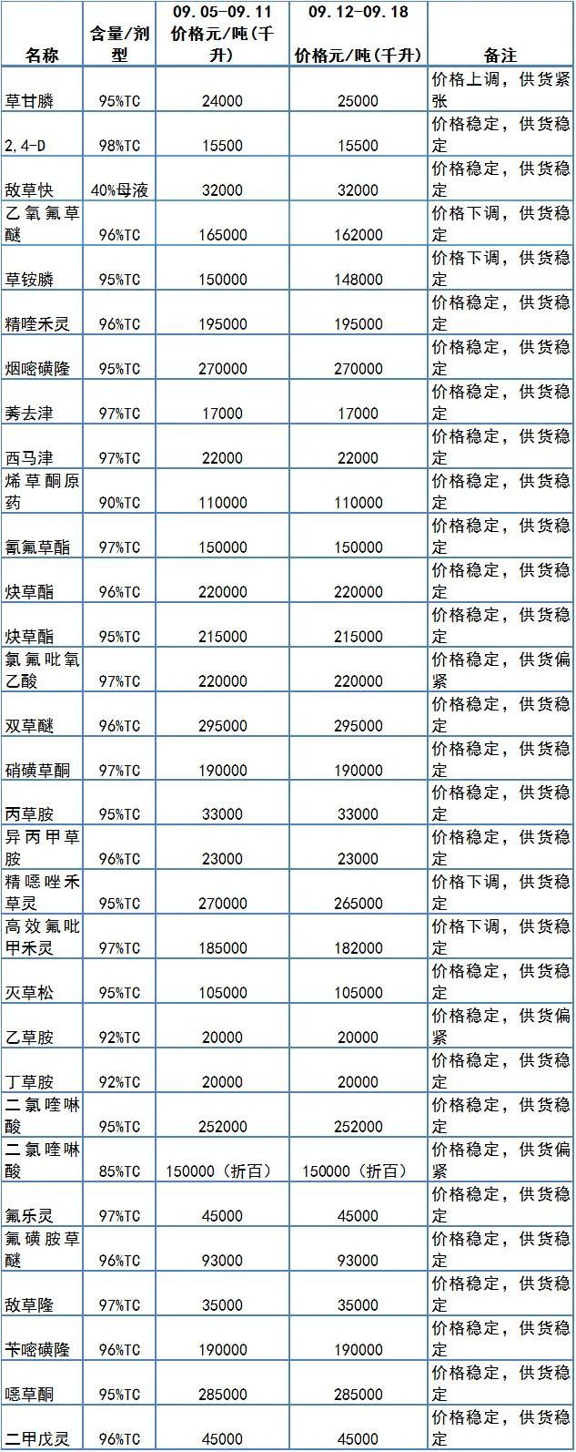 95%草甘膦每吨上调1000元,至25000元/吨