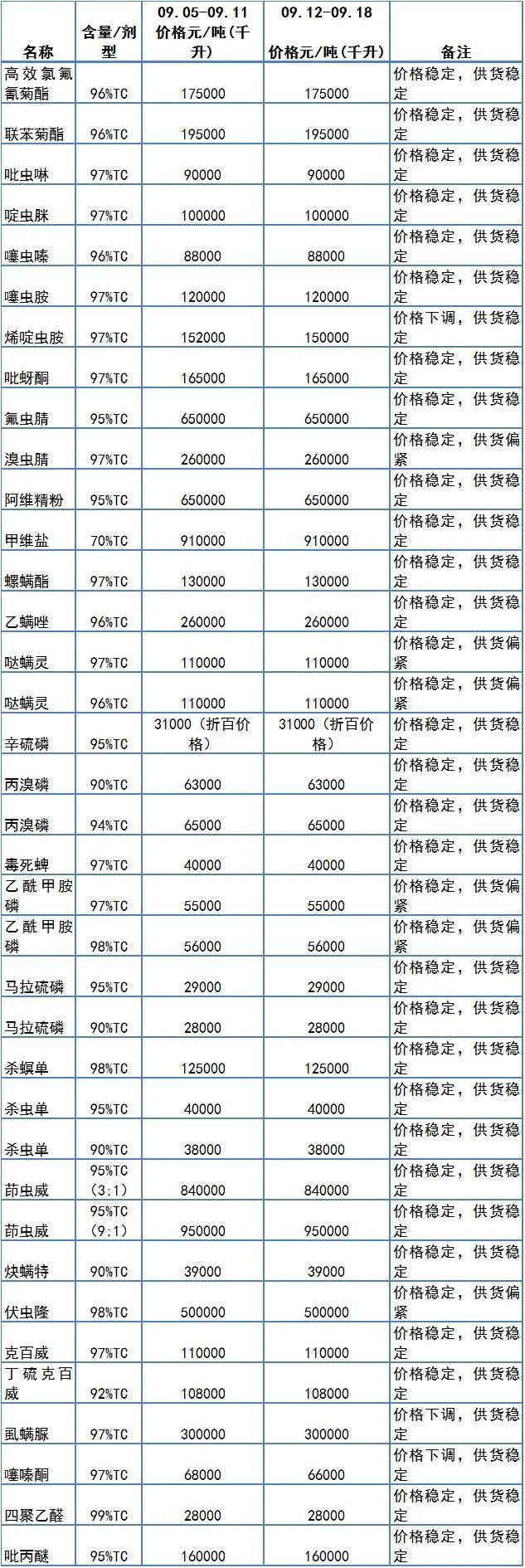 97%烯啶虫胺每吨下调2000元,至150000元/吨