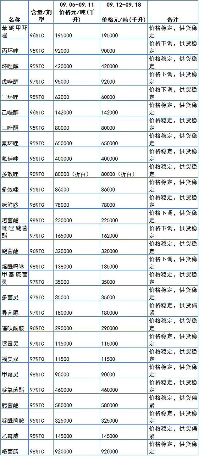 97%戊唑醇每吨下调3000元,至92000元/吨