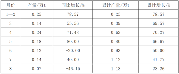 2020年8月内蒙古化学农药原药产量为0.48万吨,同比增长6.67%。2020年1—8月内蒙古化学农药原药产量为2.31万吨,同比下降18.37%。